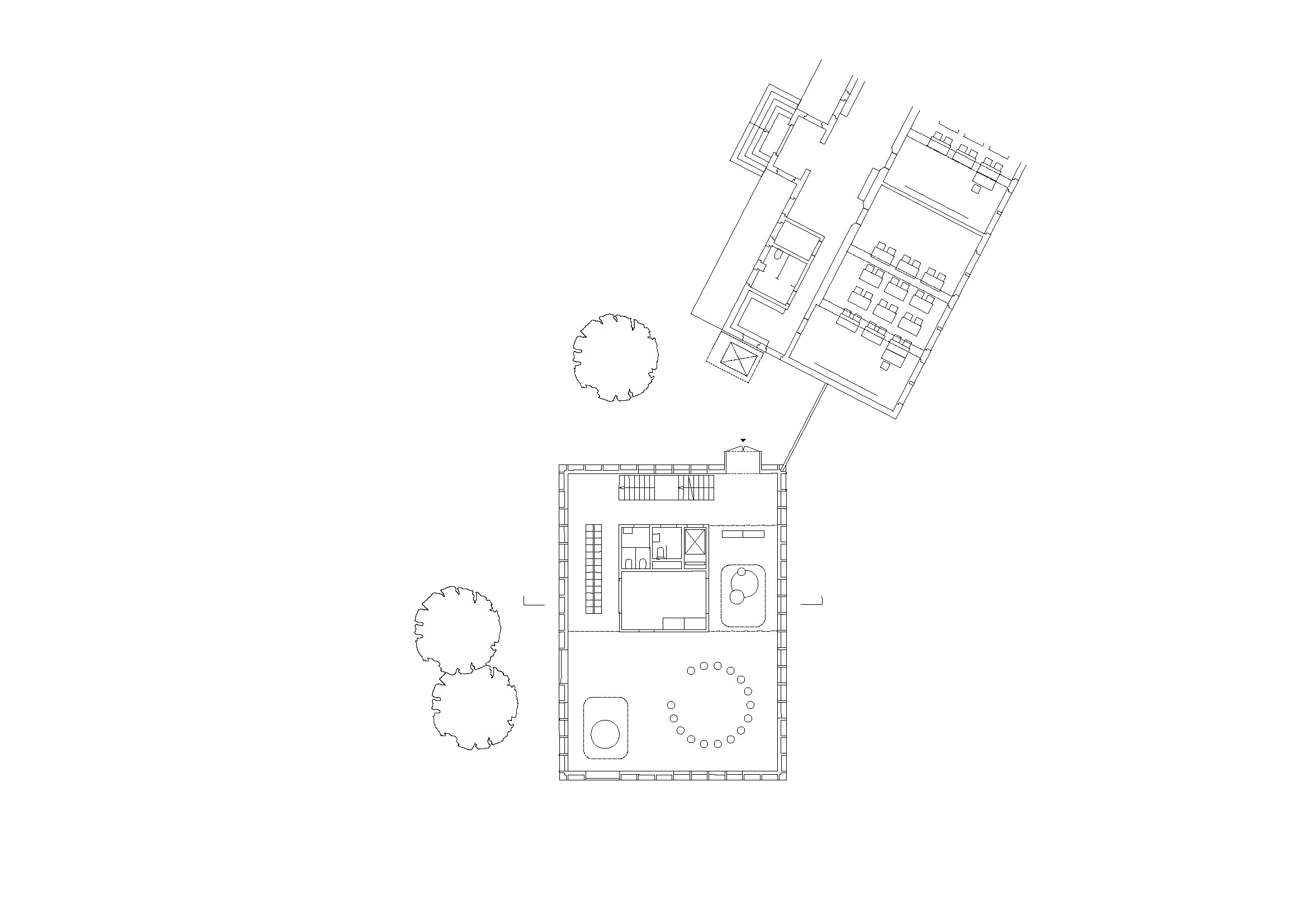 Die ortsbauliche Struktur wird geprägt durch den historischen Kern um die Kirche und die kleinmaßstäblichen Gebäude, die sich entlang der Hauptstraße aufreihen. Im Sinne des Denkmalschutzes lehnt sich der kompakte Neubau in Bezug auf Stellung, Proportion und Dachform an das ursprüngliche Riegelgebäude an und nimmt so die ortstypischen Gestaltungsprinzipien auf. Dabei nimmt der Kindergarten durch seine leichte Schrägstellung zur Hauptstraße eine Sonderstellung ein und betont auf eine selbstverständliche Weise die öffentliche Funktion des Kindergartens im gewachsenen Gefüge. Die drei Kindergartenklassen werden als nahezu identische Regelgeschosse kompakt übereinandergelegt.