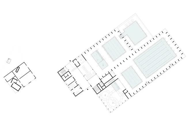 Zugunsten einer maximal zu erhaltenden Freibadfläche, wird der Neubau mit möglichst geringem Fussabdruck konzipiert. Durch die selbstbewusste und von der Strassenführung unabhängige Platzierung des Gebäudes entstehen klar ablesbare Freiflächen, sowie eine bewusste Kantenbildung zum öffentlichen Raum. Das Gebäude nimmt den Platz des früheren Freibadeingangs ein und bildet eine städtebaulich wirksame Fassung des neu geschaffenen, vorgelagerten Vorplatzes.